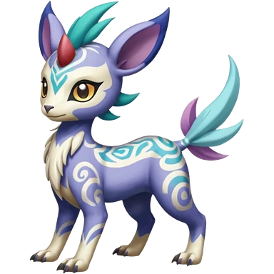 Tropical Tiny Marked Patterned Tribal Colorful Skilled Adept Graceful Asian Painted Garurumon-Meloetta-Absol-Suicune-Cobalion-fusion-hybrid-creature (full body) emoji