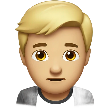 caramel skin color. Teen age. Short buzz, messy blonde hair, dark brown bushy eyebrows large expressive golden-brown eyes, brown skin color, scar over nose, wearing a plain white t-shirt. 20 year old male. Disappointed thinking facial expression. caramel skin color. emoji