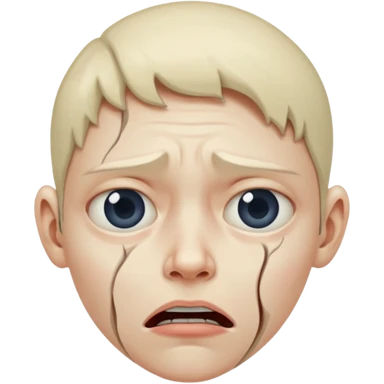 Distorted cartoon face after punch, stretched cheeks, trimmed beard, medium-length black hair, short sides, hair forward, transparent background. emoji