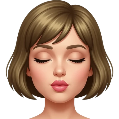 Diva with short dark blonde hair. Green eyes. Eyes closed. Blowing a kiss emoji