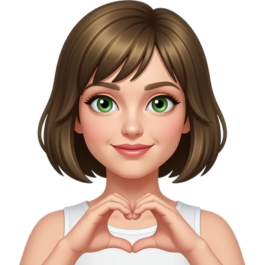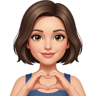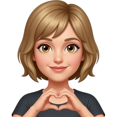 Diva with short brown hair with blonde streaks hair. Hazel eyes. Making heart symbol with her hands emoji | AI Emoji Generator