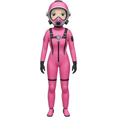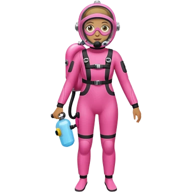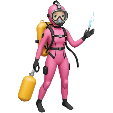 woman diver full body with pink diver suit, diver mask and oxygen tank emoji