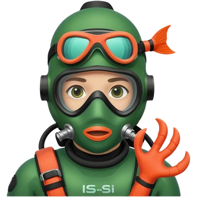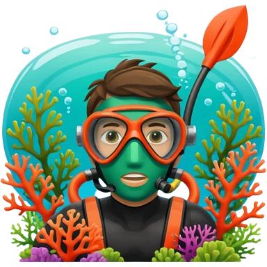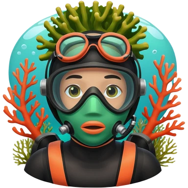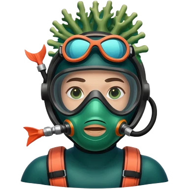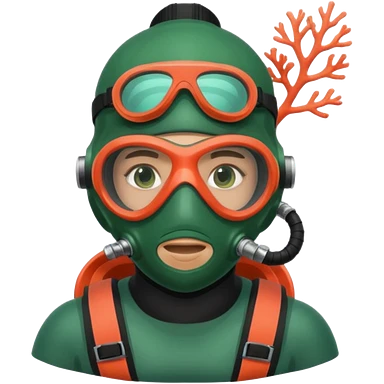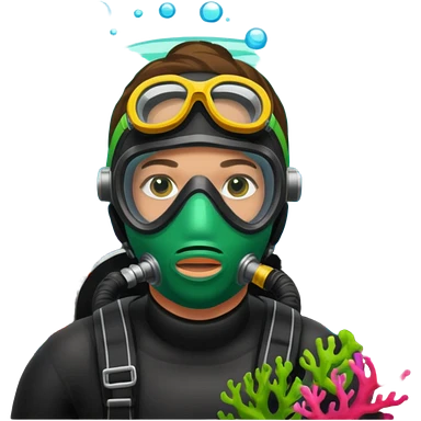 Diver + green mask,Coral Diver. emoji