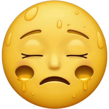 softly smiling crying face that appears to be melting downward, large glossy drip like emoji, combined with the smooth dissolving lower half similar to the melting face. ‘I’m okay :) but absolutely not okay’ emoji