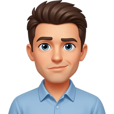 Dizzy fighter emoji, karate gi, swirling eyes, trimmed beard, medium-length black hair, short sides, hair forward, simple style. emoji