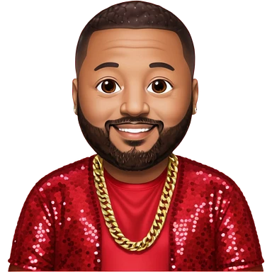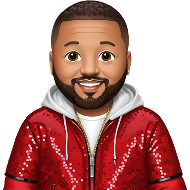 DJ Khaled with dark brown hair, red sequin outfit emoji
