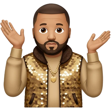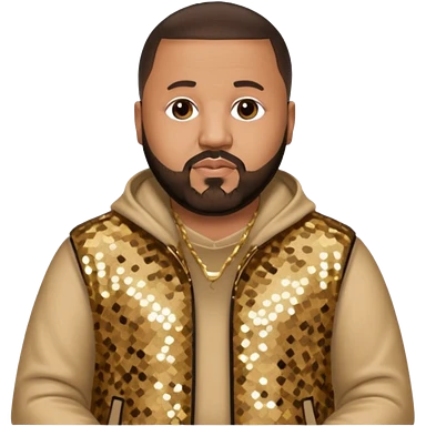 DJ Khaled with dark brown hair, beige sequin outfit emoji