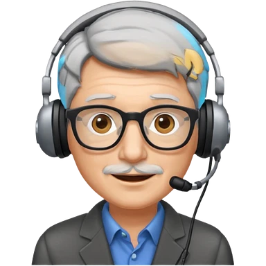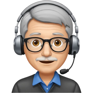 Un locutor de radio,edad avanzada, pelo negro, con gafas, emoji