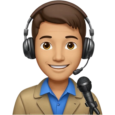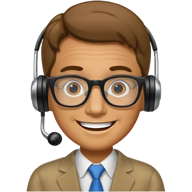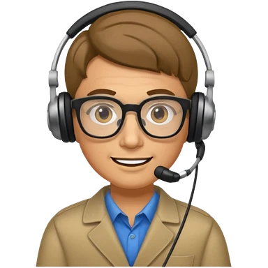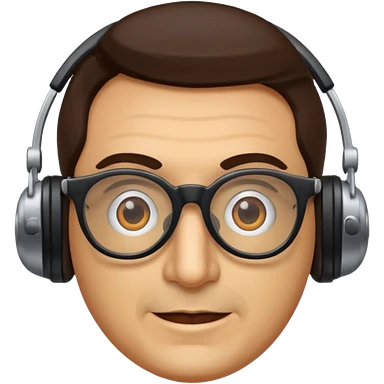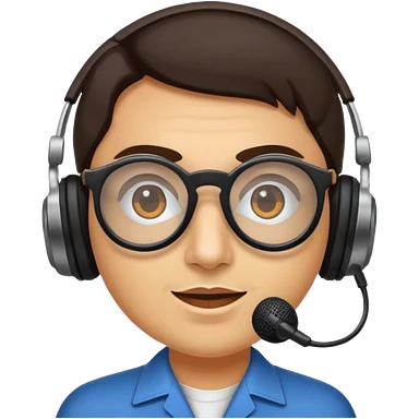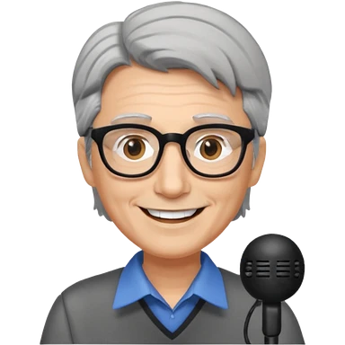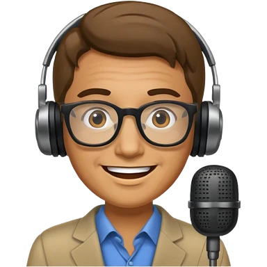 Un locutor de radio, pelo moreno, con gafas, entrado en años emoji