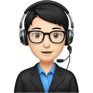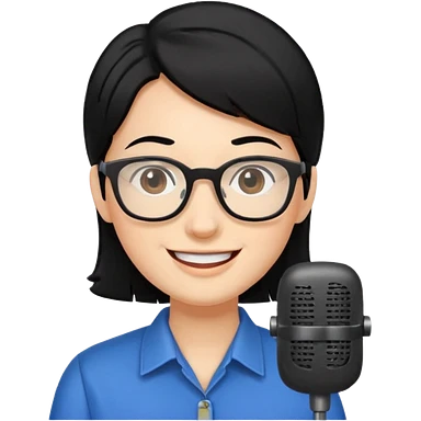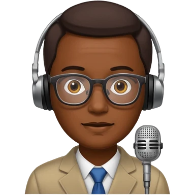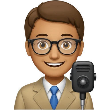 Locutor con anteojos pelo corto nogro y micrófono emoji