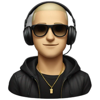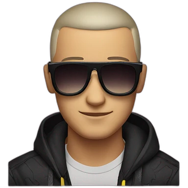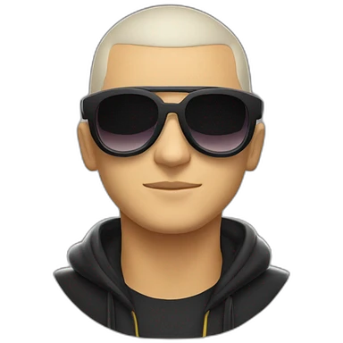 Serious face of DJ Snake with black sunglasses front view wearing a BLACK hoodie emoji