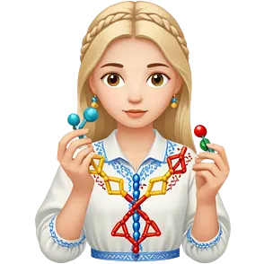 Ukrainian girl in traditional embroidered vyshyvanka shirt holding a DNA molecule in her hand emoji