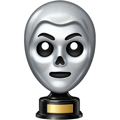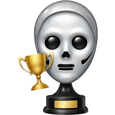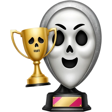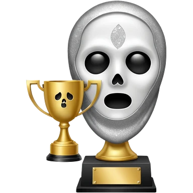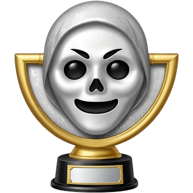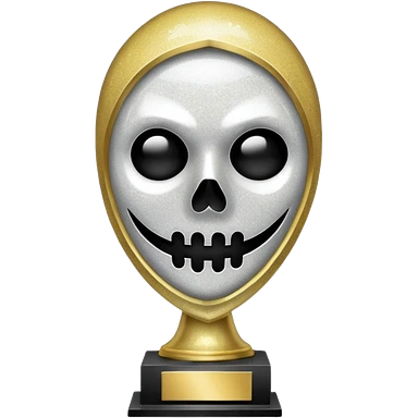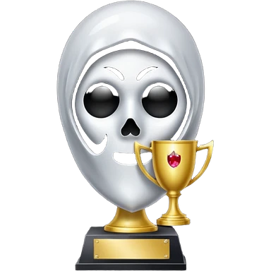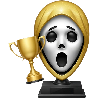 Um emoji estilo iOS do Ghostface, com sua icônica máscara branca e olhos e boca pretos, mas com um sorriso feliz. Ele usa um capuz preto e a forma geral do emoji deve ser arredondada e simplificada, semelhante a outros emojis do iOS. O fundo é transparente. emoji