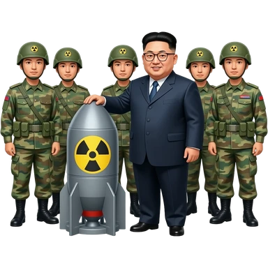Kim Jong Un with nuclear bomb with soldiears emoji