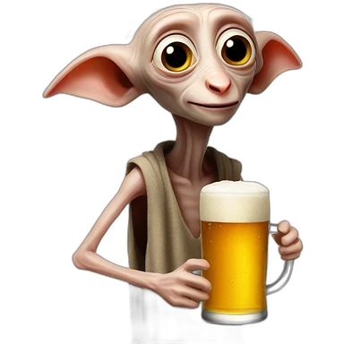 Dobby the house-elf wearing a tiny Santa hat, holding a wrapped gift with his big, joyful eyes shining emoji