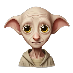 Dobby the house elf with big green eyes, floppy ears, friendly expression emoji