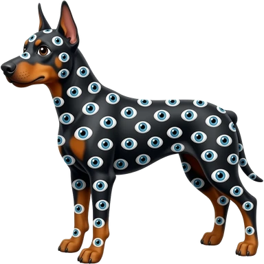 doberman covered in eyes emoji