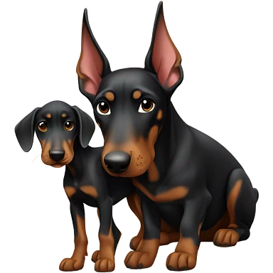 A bald newborn baby boy riding a Doberman like a horse emoji