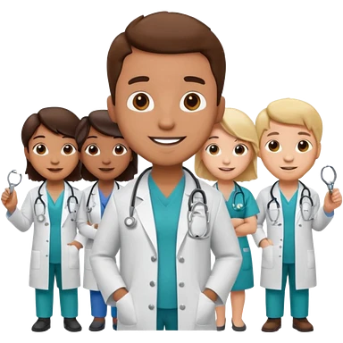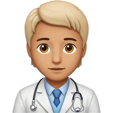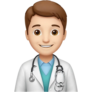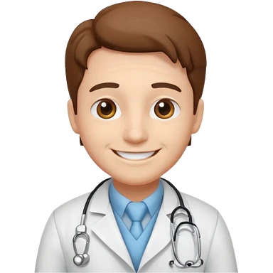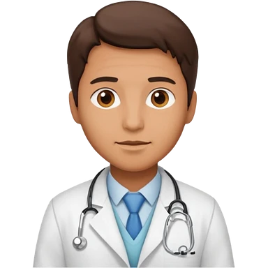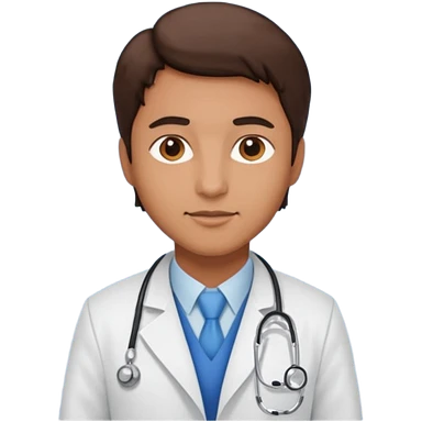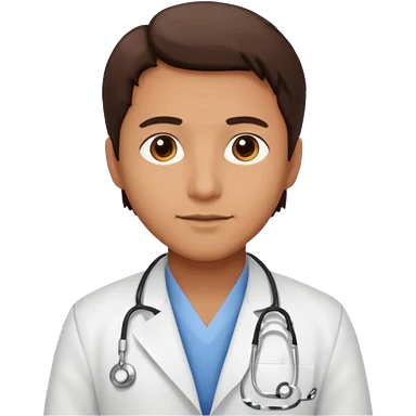 doctor hombre con uniforme azul oscuro cabello marron emoji