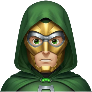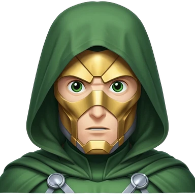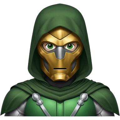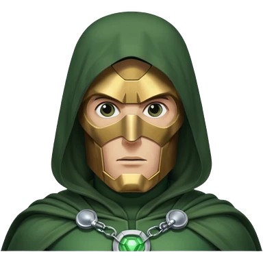 Doctor Doom standing with glowing green eyes visible through his metal mask, wearing green cloak emoji