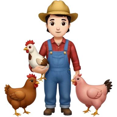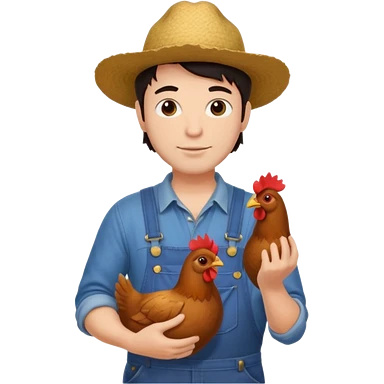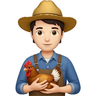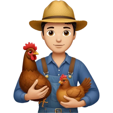 UN HOMBRE VESTIDO DE GRANJERO PIEL CLARA Y PELO OSCURO CON UNA GALLINA emoji