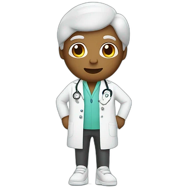 "A simple and clean bust of a male doctor in a white lab coat with a red cross emblem on the chest. He has a light blue shirt and a subtle red tie. A minimalistic stethoscope drapes around his neck with a thin, smooth design. His facial features are simplified but expressive, with short, neatly styled hair and a calm, confident look. Behind him, a faint, abstract medical symbol (such as a heartbeat line or a plus sign) subtly reinforces the healthcare theme. The overall style is modern, sleek, and minimalistic, using smooth lines and soft shading. emoji