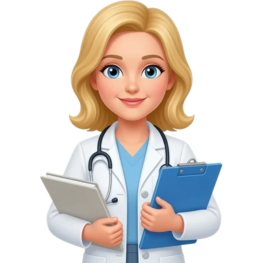 doctora con guardapolvo blanco, con pelo recogido de color rubio emoji