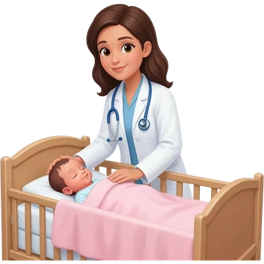Una Doctora mujer pediatra atendiendo un bebe emoji