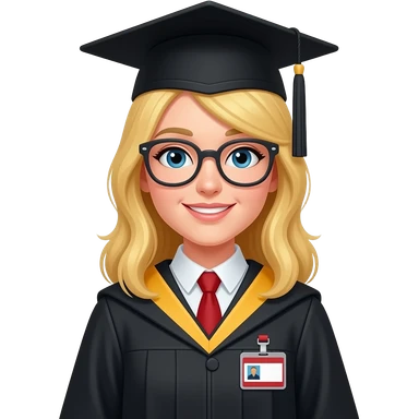 identification badge emoji, doctoral student, blonde girl picture on id badge emoji