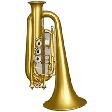 crying trombone. a tongue pokes out of its bell, which is its frowning mouth. two squeezed tight cartoonish eyes rest on top of it, from which big blue tears spray emoji
