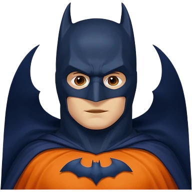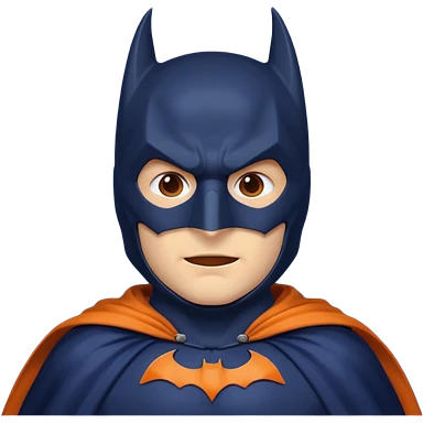 generate a batman emoji with just the face and neck showing and part of the cloak and and wings. Shade the mask in dark navy blue. Shade the wings in a medium olive green. Shade the cloak in a solidt vibran orange emoji