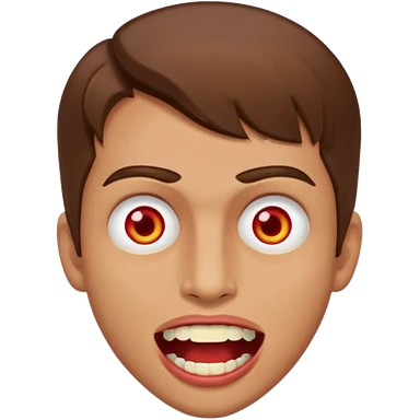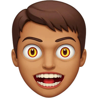 does evil things guy brown hair wide open mouth with red pupils but slightly yellow eyes and teeth emoji | AI Emoji Generator