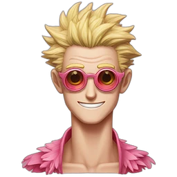 Doflamingo’s glasses are large, round, and pink with reflective, light pink lenses. The thin, delicate frames give off a flamboyant and regal vibe. emoji