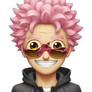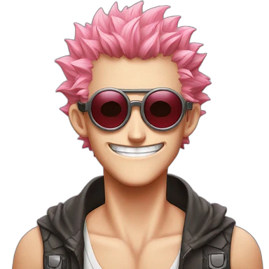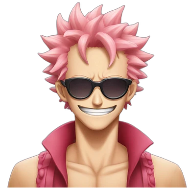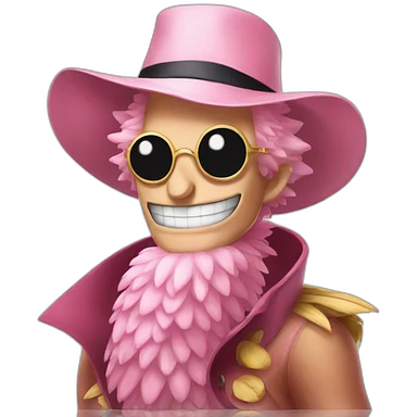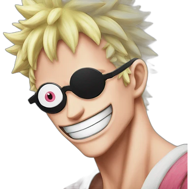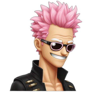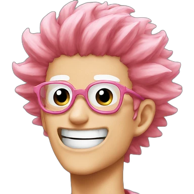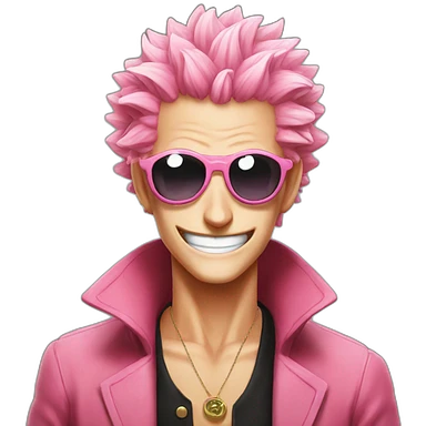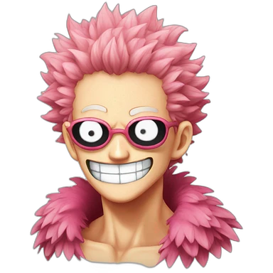 Doflamingo’s glasses are large, round, and pink with reflective, light pink lenses. The thin, delicate frames give off a flamboyant and regal vibe. emoji