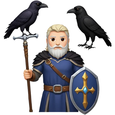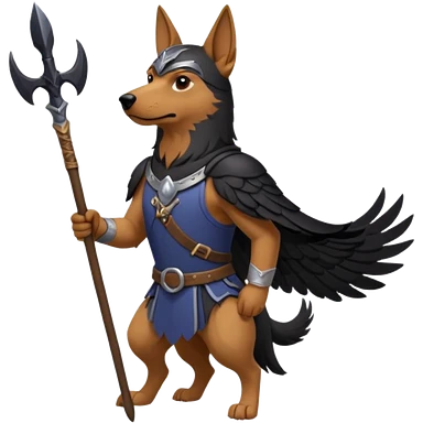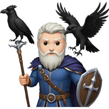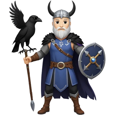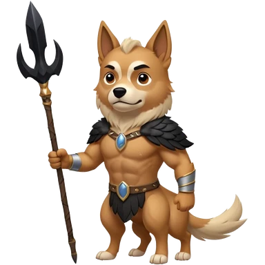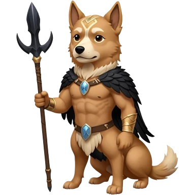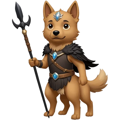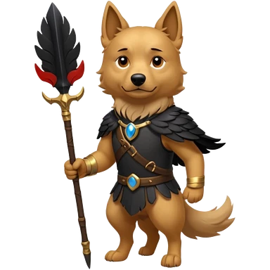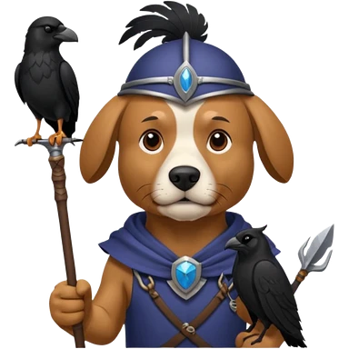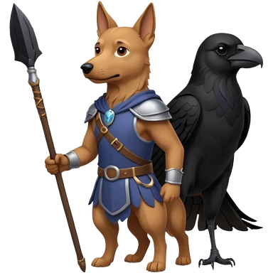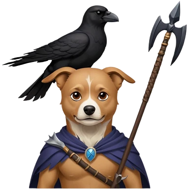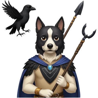 dog odin has spear. he has raven on his shoulder. dynamic pose emoji