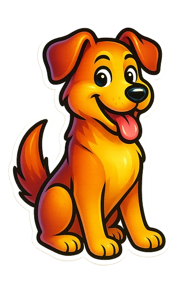 Edit the sticker of the cute dog character lying on its belly with a white background, maintaining the original retro stickers style. emoji