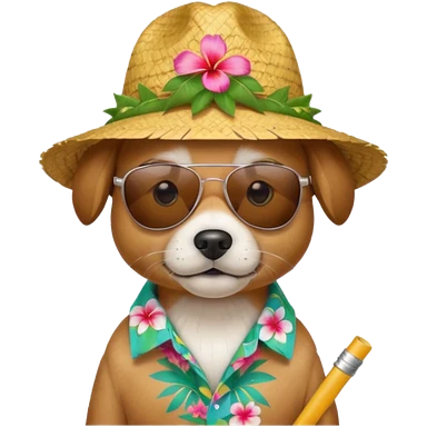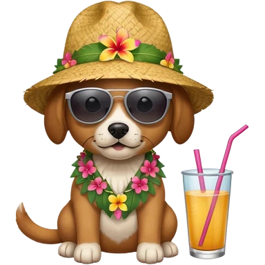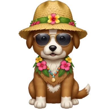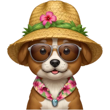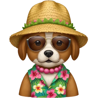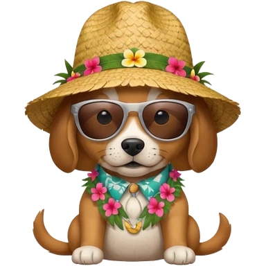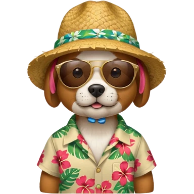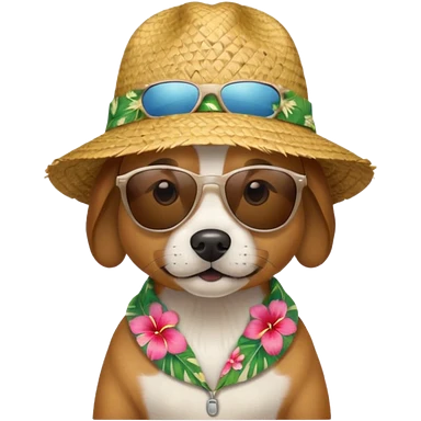dog with sunglasses and straw hat, hawaii shirt emoji