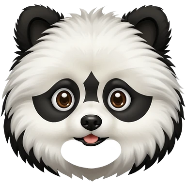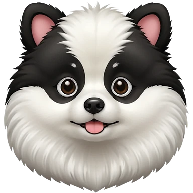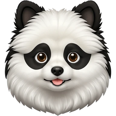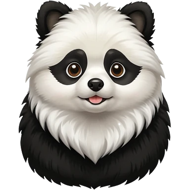 Dog pomeranian but hes like a panda the color and everything he has all black face but in the middle and nose part is white emoji