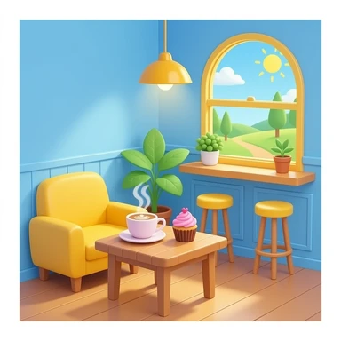 blue yellow Cute cafe corner, transparent background inspired by barbie colour pallete emoji