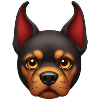 dog emoji with a sly, naughty grin, red devil horns, raised eyebrow, looking cheeky emoji