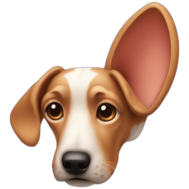 One dog ear isolated with lotion bottle dropping a water drop emoji