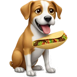 Dog eating a taco riding a surfboard wearing a purple hoodie emoji