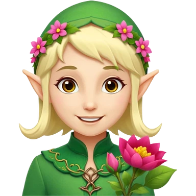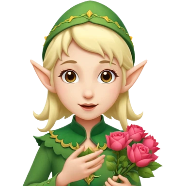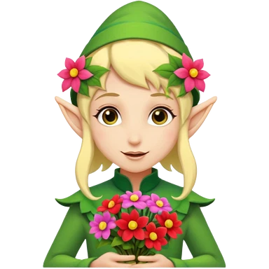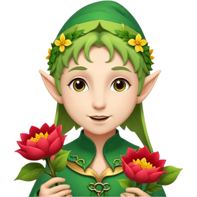 Fantasy elf portrait emoji, winter forest wreath made of pine branches and berries, elven ears visible, calm elegant expression, clean simple design, soft winter colors, flat emoji style, high readability, male variant emoji