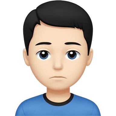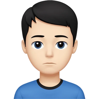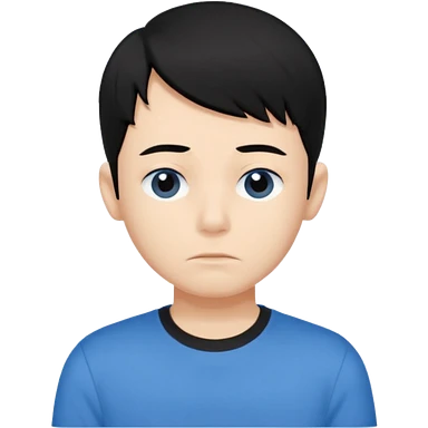 Cute apple emoji-style boy portrait, black hair, blue t-shirt, big black eyes, closed mouth,clean bold lines, flat colors, minimal shading emoji