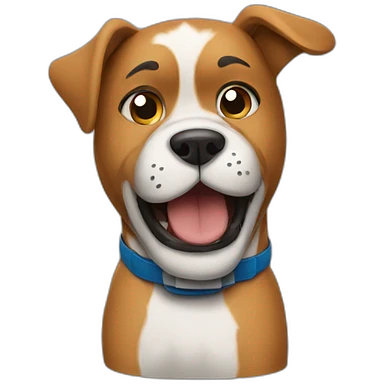A Blue and yellow bloodhound dog standing erect on its hind legs boxing. emoji