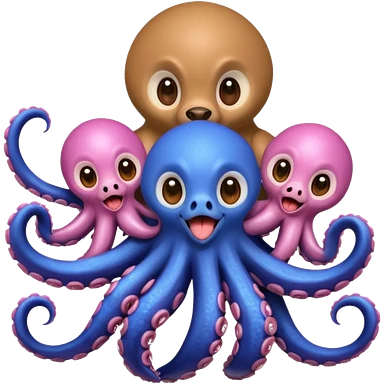 Dog with an octopus on his back with monkeys all of their tongues out with big eyes emoji