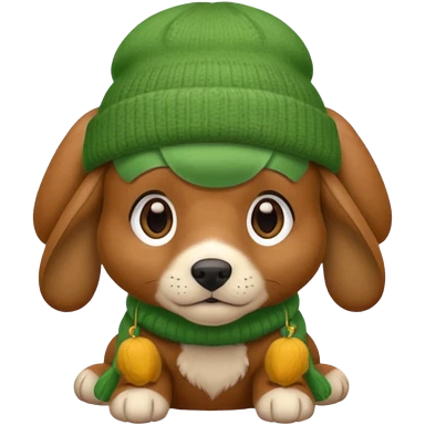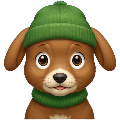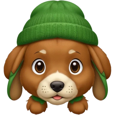 Dog in Green Beanie – brown puppy with floppy ears and cozy beanie. emoji | AI Emoji Generator