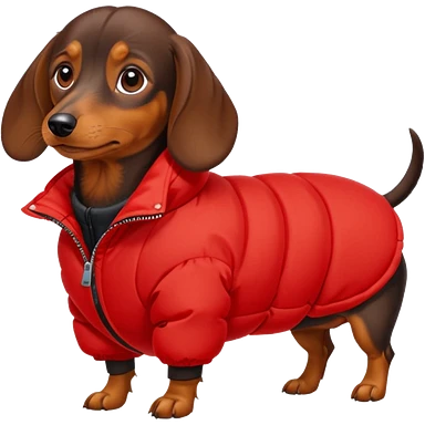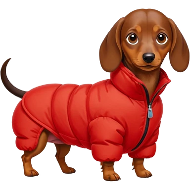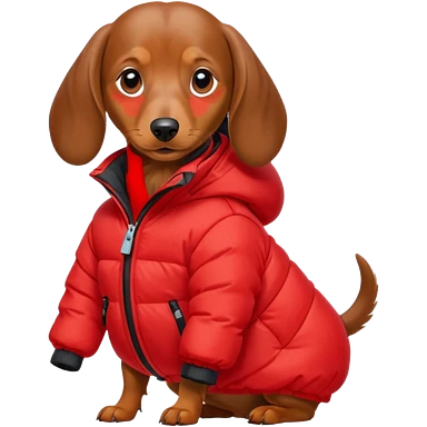 Daschund dog in puffer so big it can't walk emoji