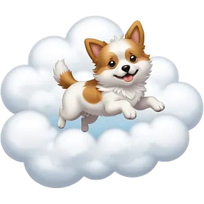 Dog jumping on cloud emoji