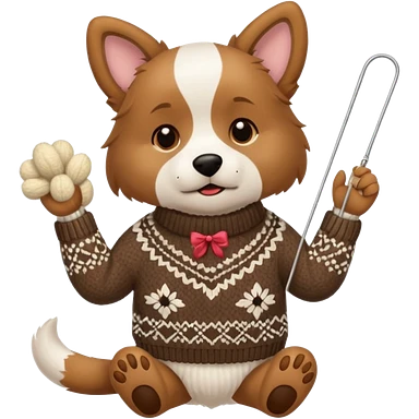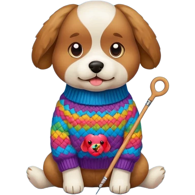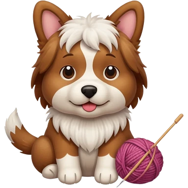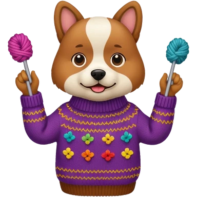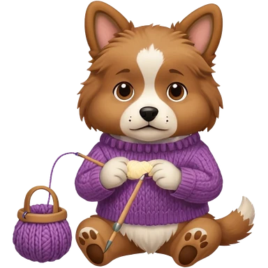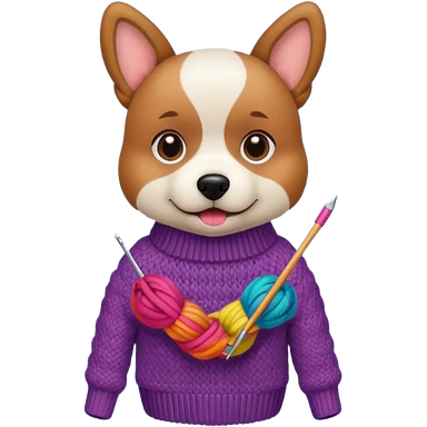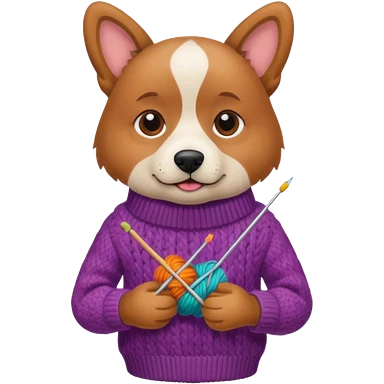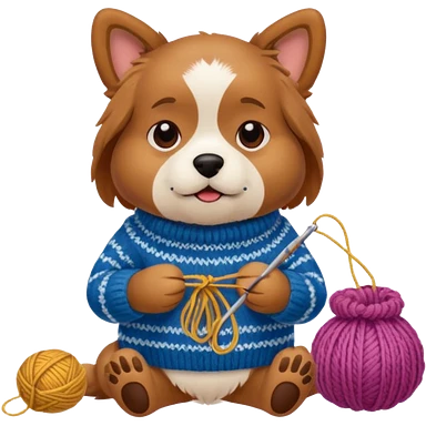 Blonde girl knitting with pink sweater knitting a hat emoji